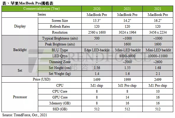 机构:苹果新一代 MacBook Pro 抢攻中、高端市场,预估 2022 年 Mini LED 背光笔电出货量将达 500 万台